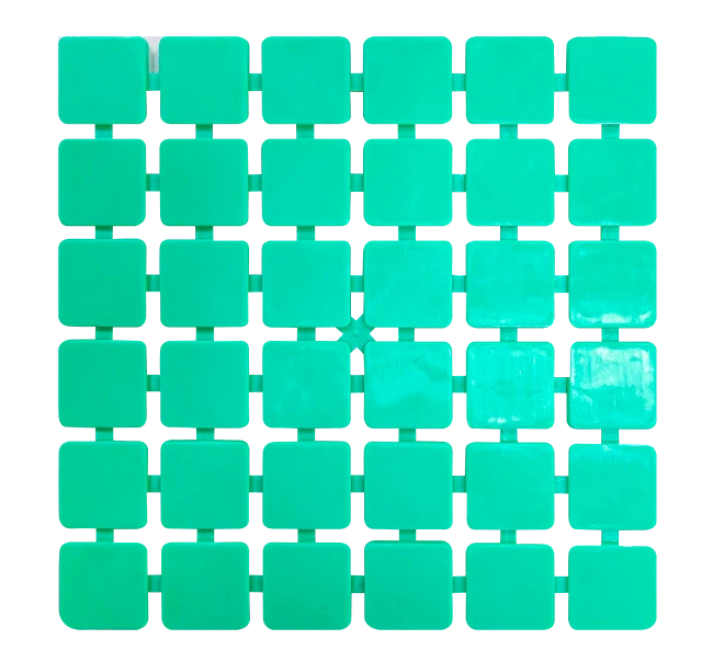Possuem dimensões de 31cm x 31cm e estão disponíveis em 5 cores. Sua instalação é feita da mesma forma das pastilhas cerâmicas, ou seja, com argamassa cimento cola e seu acabamento com rejunte cimentício colorido.